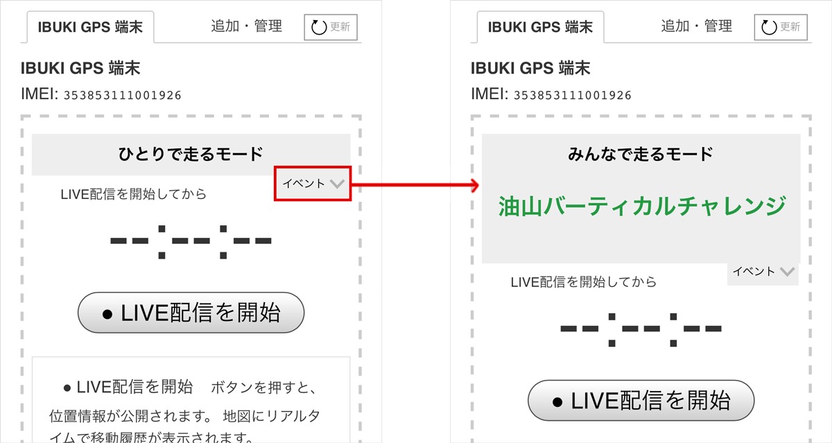 IBUKI GPSでのLIVE配信と一緒に使うと非常に便利な「イベント機能」を、先日IBUKIに追加しました。